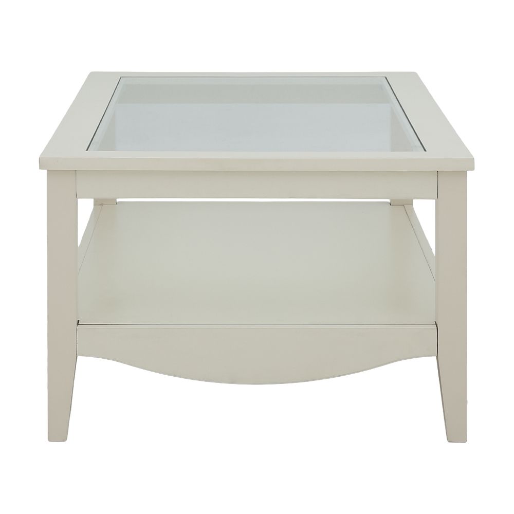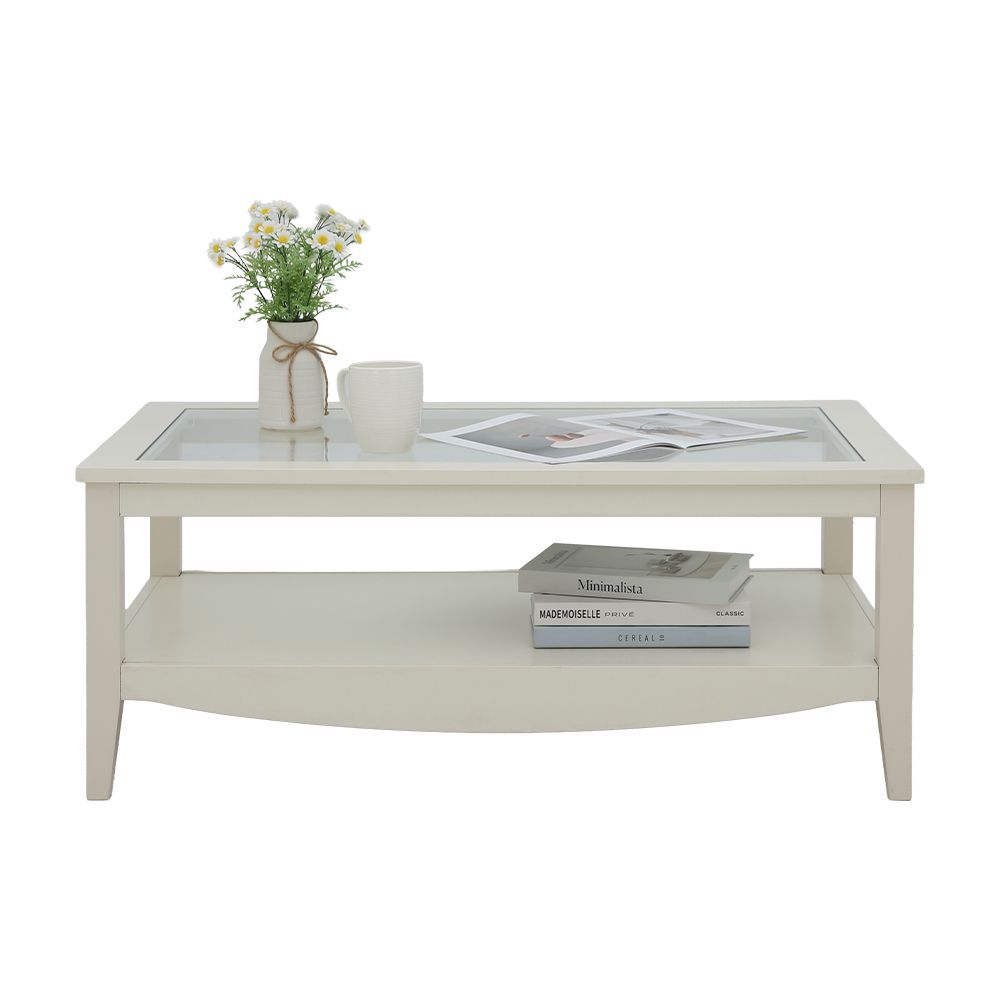 – ท็อปโต๊ะผลิตจากไม้พาร์ทิเคิลเกรดสูง (E1) หุ้มฟอยล์สีไอวอรี่และกระจกนิรภัย